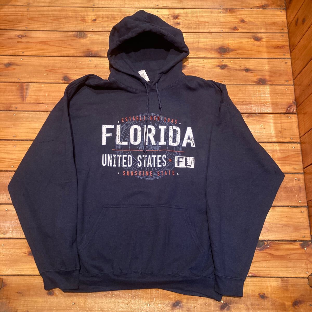 > GILDAN FLORIDA プリントパーカー フードスウェット ネイビー系 XLサイズ USA古着 アメリカ古着