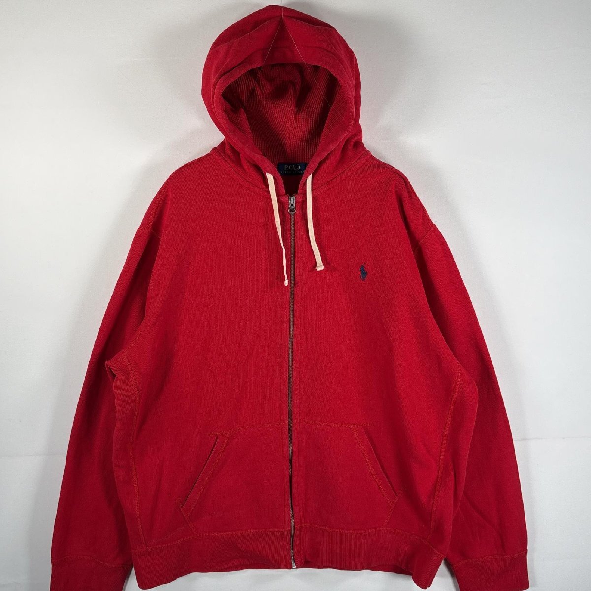 - 古着 ポロ・ラルフローレン POLO RALPH LAUREN パーカー フルジップ ワンポイントロゴ刺繍 フーディー 大きいサイズ XXL レッド メンズ