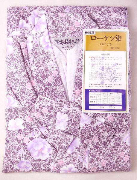 ガーゼねまき ローケツ調染 婦人用 M パープル 岡表二重ガーゼねまき 介護ねまきにも