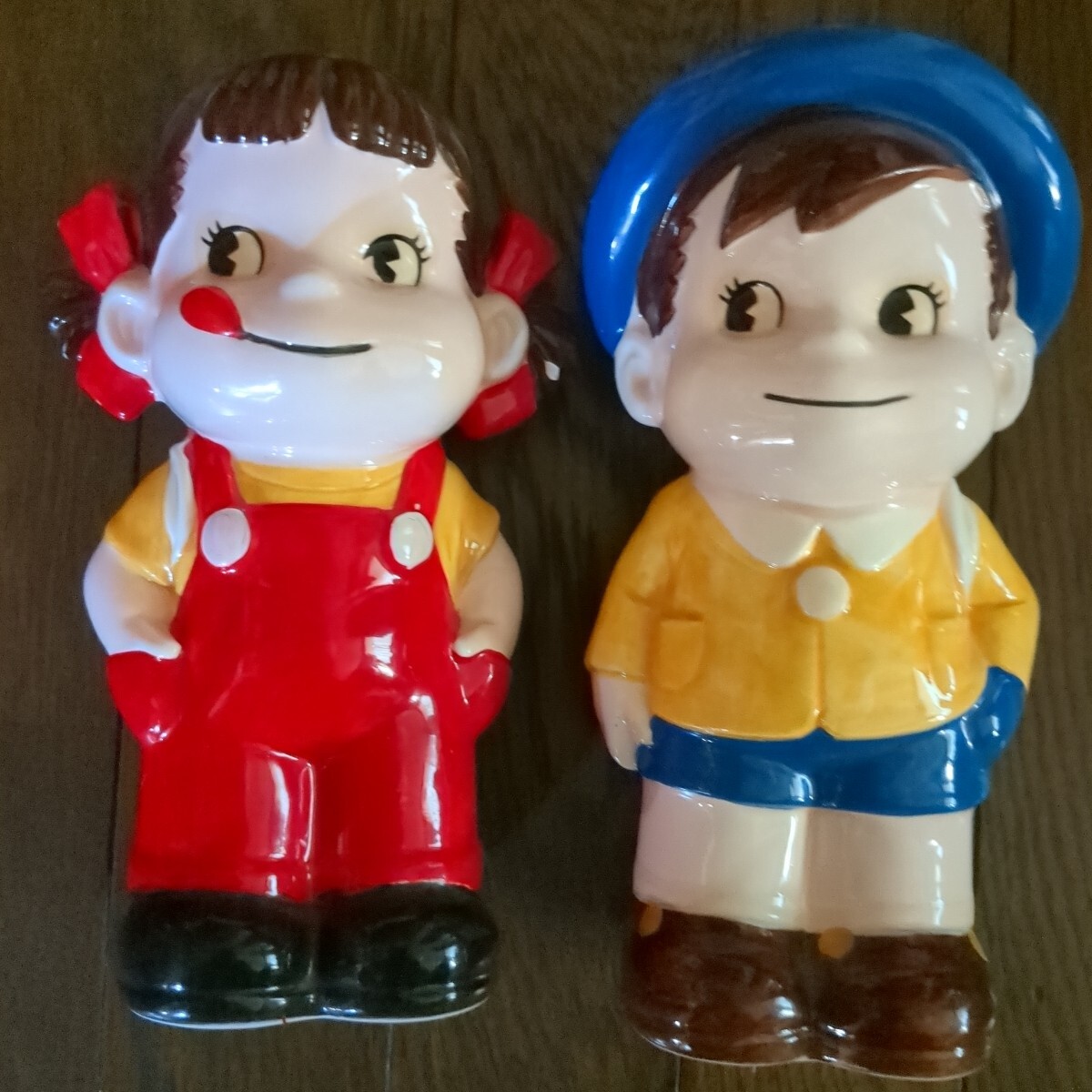 - 当時物★ペコちゃん★ポコちゃん★陶器製★貯金箱★全2種セット★不二家