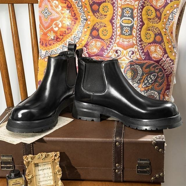 > サイドゴアブーツ ブーツ メンズシューズ 厚底 牛革 ビジネスシューズ シンプル 革靴 ハイカット 本革 チェルシーブーツ 25.5cm