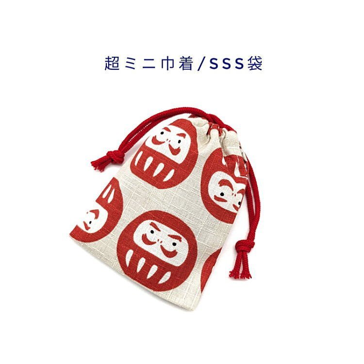 - 超ミニ巾着袋・SSS袋【和柄 だるま柄 オフホワイト】マチ無し 日本製 巾着 ポーチ 小物入れ お守り袋 合格祈願 開運 祈願 ダルマ 達磨 受験