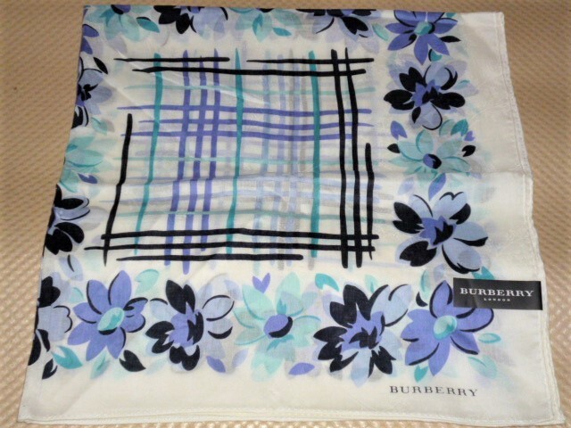 - バーバリー BURBERRY 白 ブルー フラワー 花柄 大判ハンカチ 正規品 新品 B79