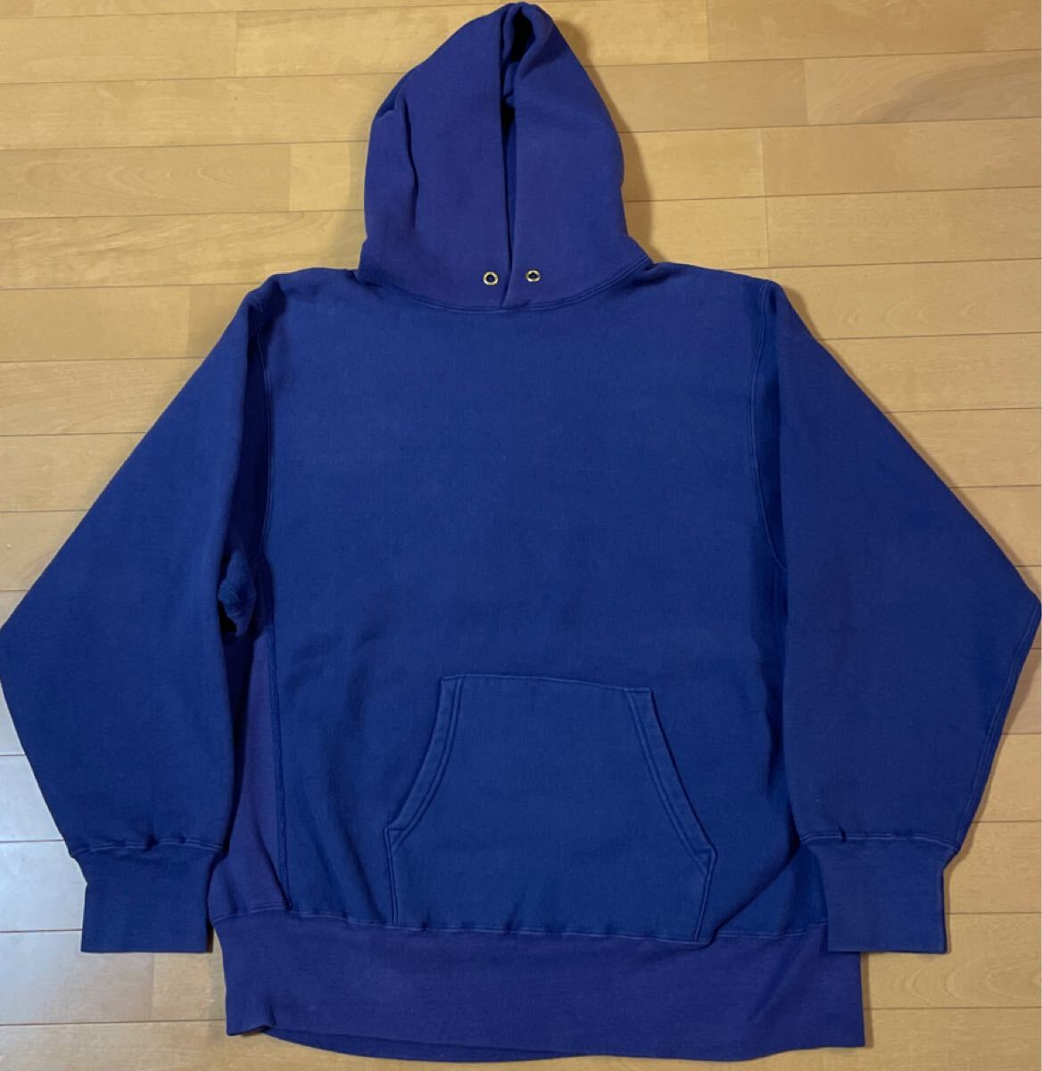> 80s 珍品2トーン目無し ナス紺 青 チャンピオン リバースウィーブ パーカー USA製 ビンテージ Championトリコタグ スウェット 無地