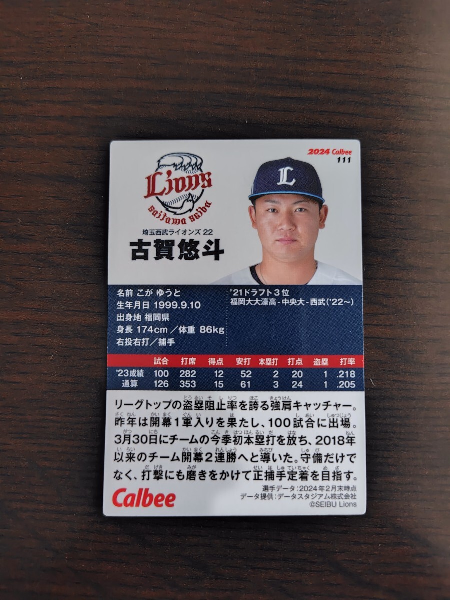 - カルビー プロ野球チップス2024 古賀悠斗 埼玉西武ライオンズ
