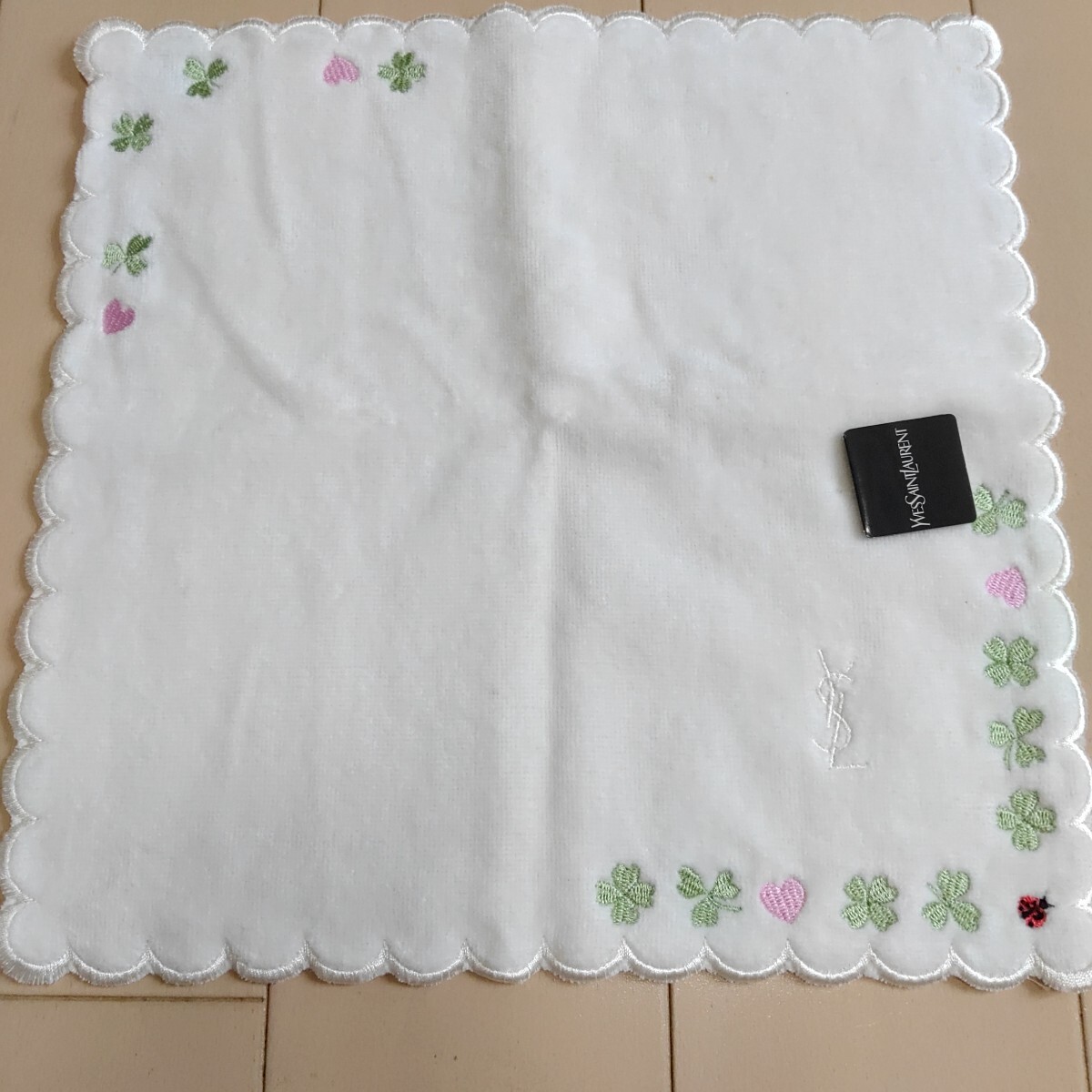 - イブサンローラン タオルハンカチ クローバーテントむし刺繍