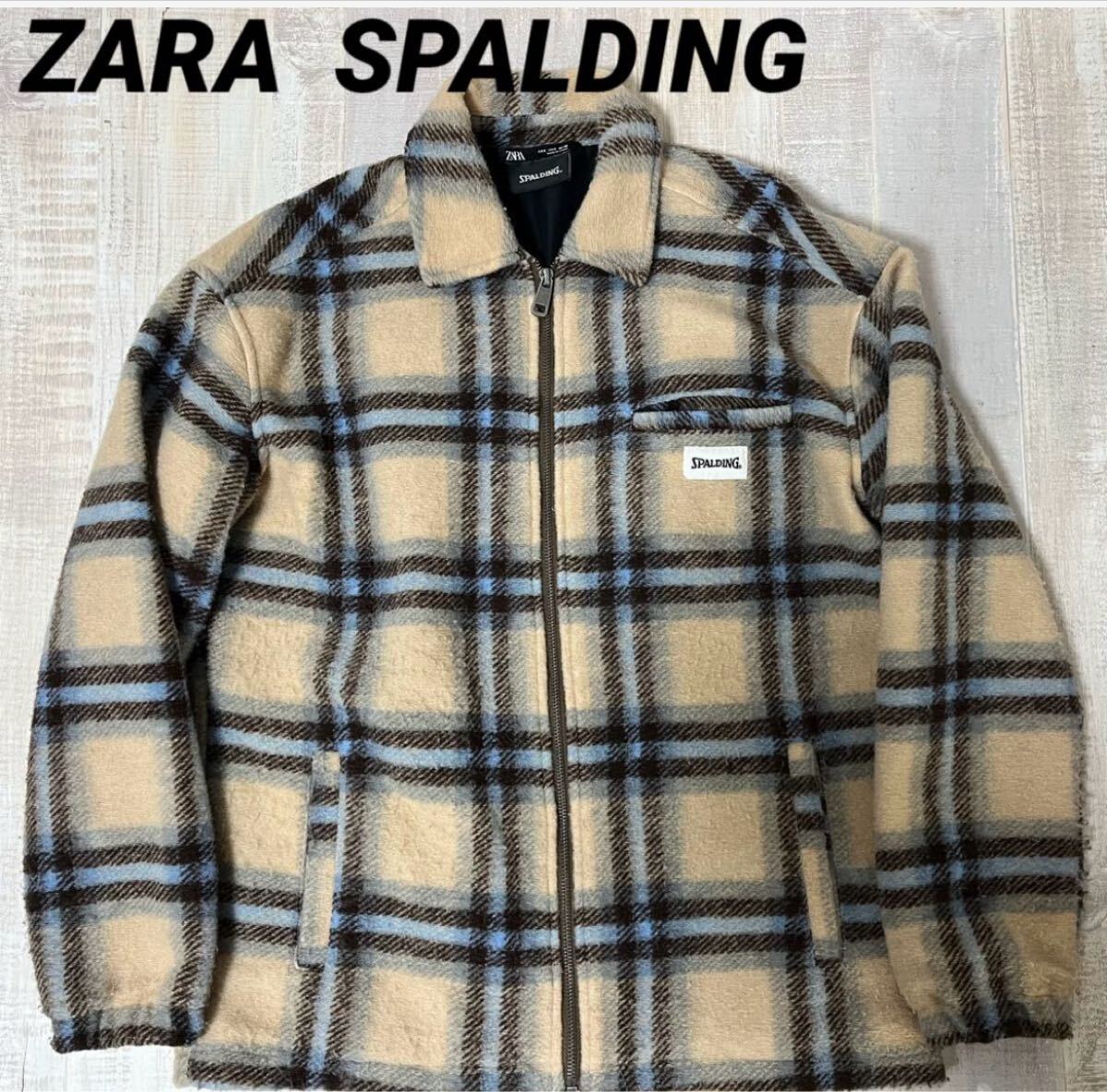 > 【好配色 バックロゴ】ZARA SPALDING チェック柄 ジップアップ フリース ジャケット ザラ スポルディング サイズS メンズ ヴィンテージ