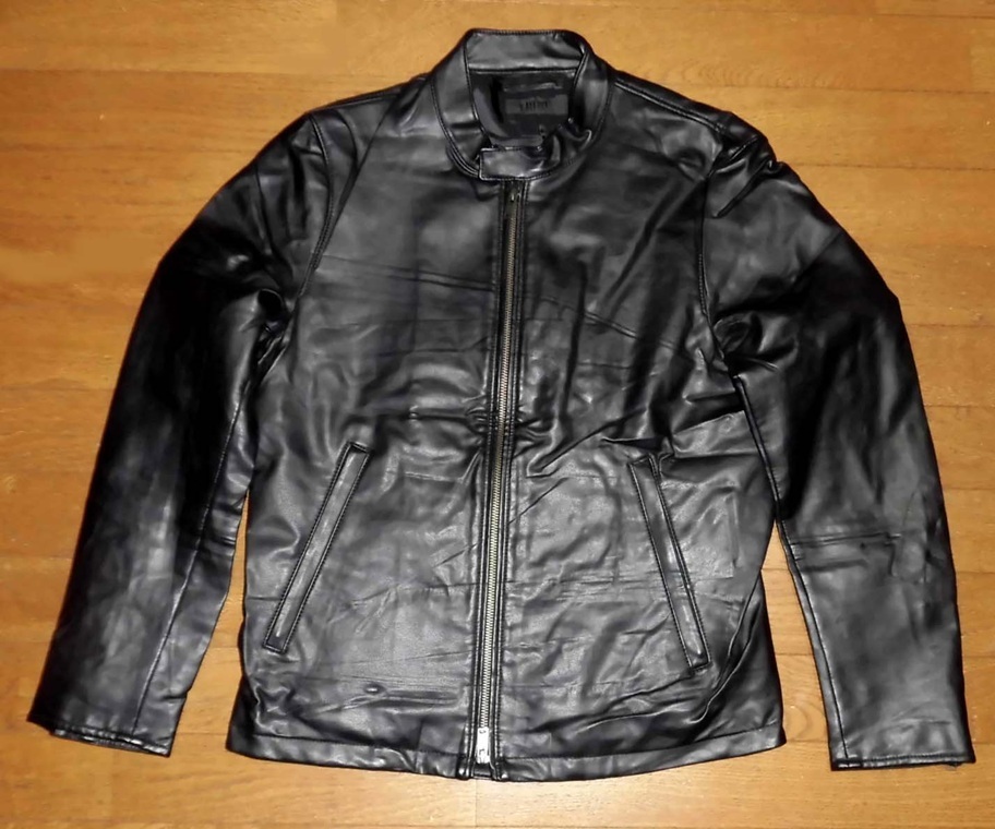 > UNIQLO ユニクロ ネオレザー シングルライダースジャケット 立襟 フェイクレザー 合皮 BLK M 使用僅 ほぼ未使用 美品