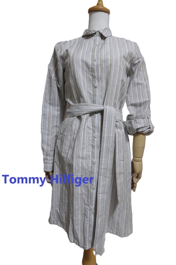 > 新品☆タグ付 トミーヒルフィガー Tommy Hilfiger 麻 シャツワンピース M