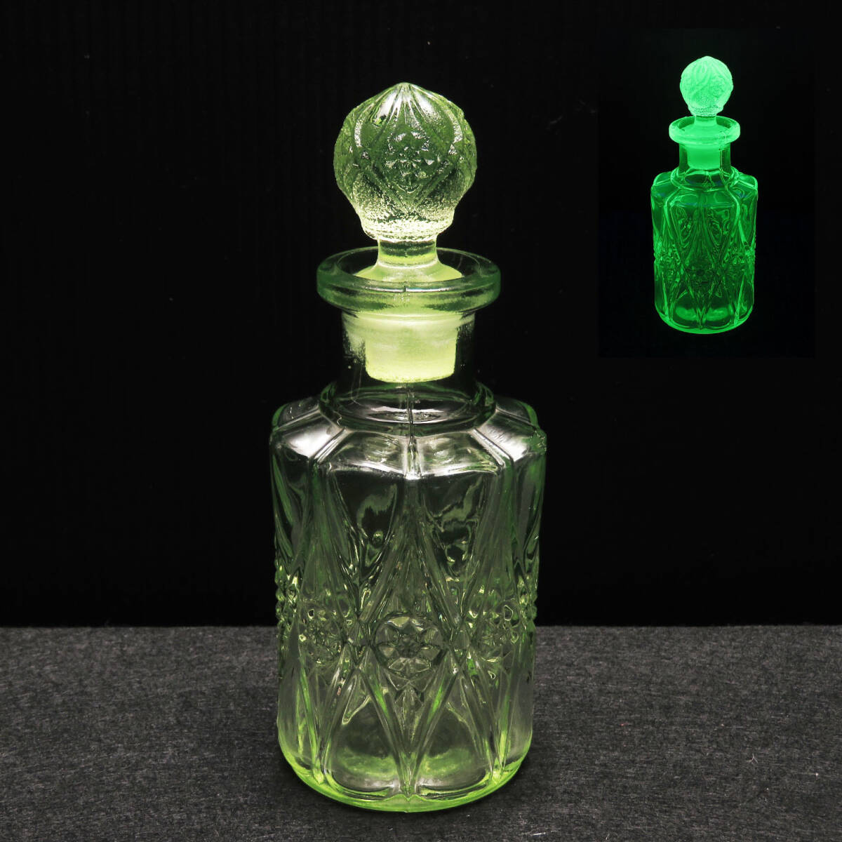 - カットが美しいウランガラスの香水瓶/パフュームボトル/化粧水ボトル/蓋付き/オブジェ/飾り/ヴァセリンガラス/インテリア雑貨/AL-0608-1