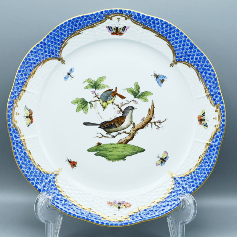 > M02-t018 HEREND ヘレンド ロスチャイルドバード ブルースケール プレート 大皿 約25.5cm 524 RO-EB 金彩