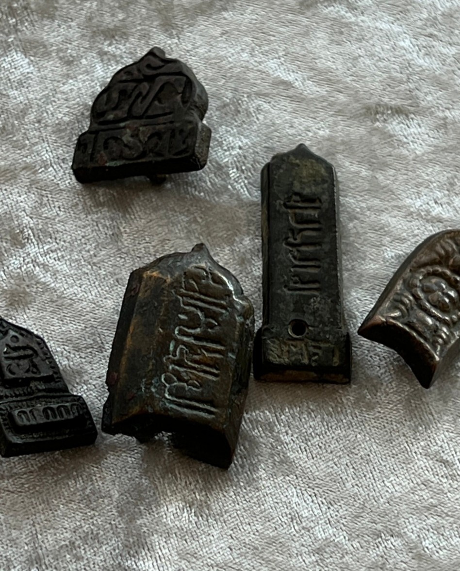 - 【雑貨】ウズベキスタンの銅板の装飾品5個セット 彫があります 10世紀ごろ ディスプレイ用品 インテリア用品 骨董品 アンティーク