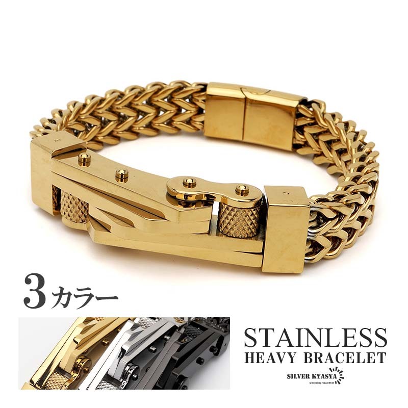 - (シルバー) ごつめ ブレスレット ステンレス メンズ チェーンブレスレット gold つけっぱなしOK