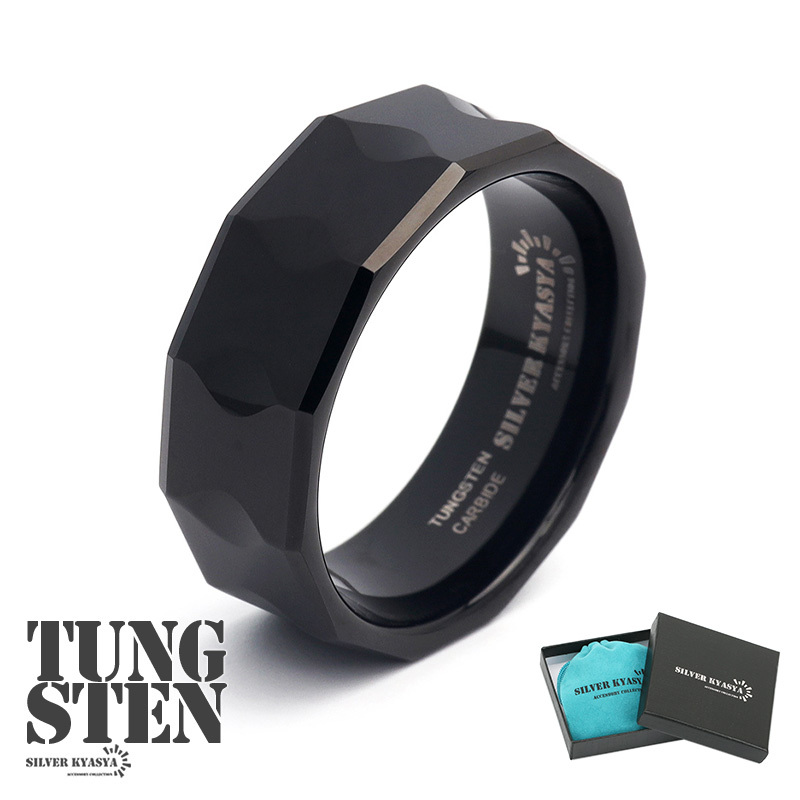 - (26号) タングステン カット リング ブラック メンズ 指輪 黒 メタリック 金属アレルギー対応 専用BOX オリジナル