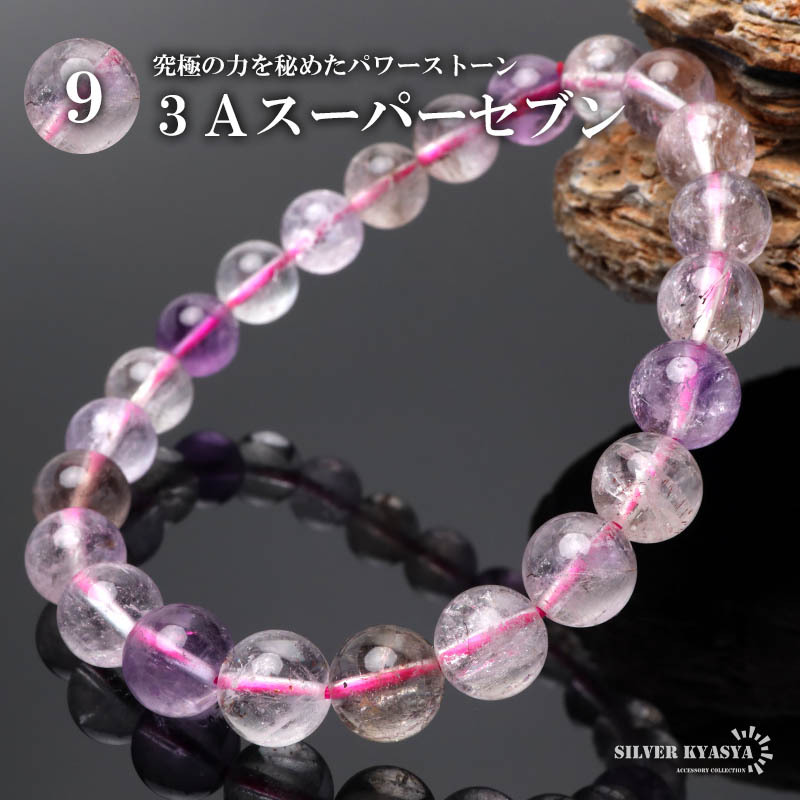 - (Sサイズ) パワーストーンブレスレット 数珠ブレスレット 3A級 スーパーセブン 9mm 天然石ブレスレット