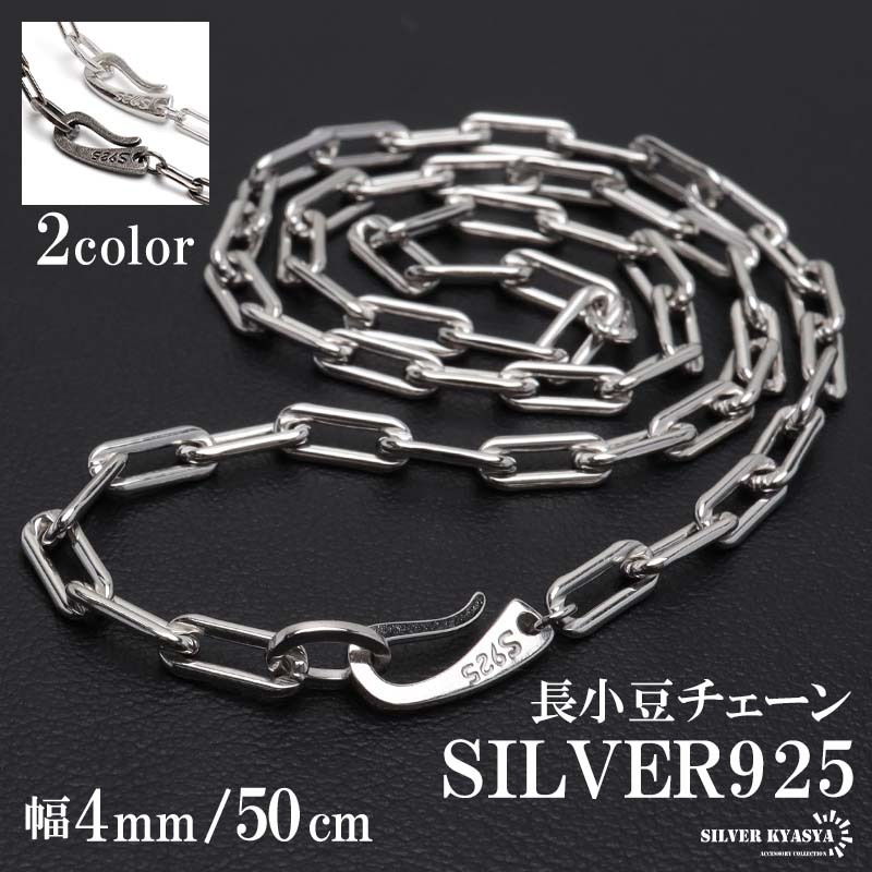 - (シルバー) 流行り 長小豆チェーンネックレス 925 ロング小豆チェーンネックレス 幅4mm 50cm シンプル シルバー