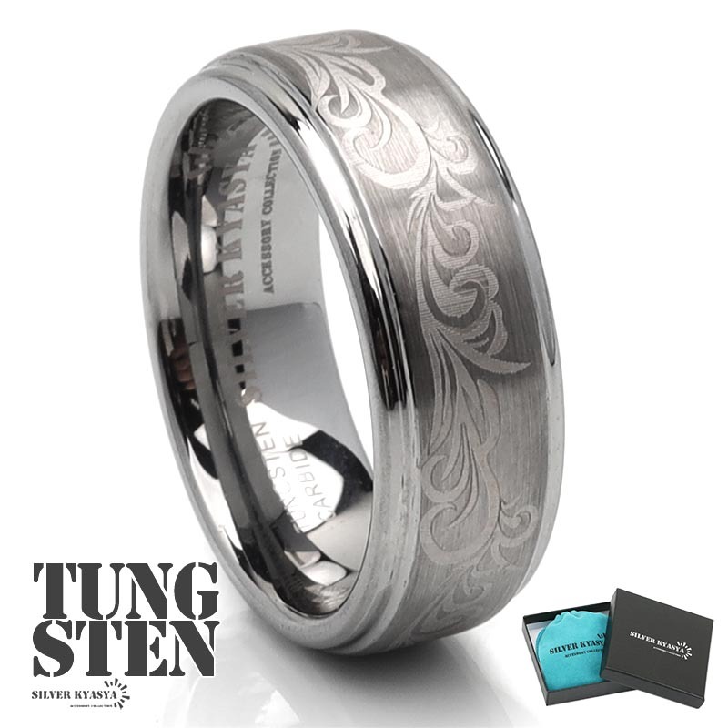 - (14号) 超硬 タングステン リング 指輪 シルバー マット 艶消し 唐草 アラベスク リング 専用BOX付属 限定