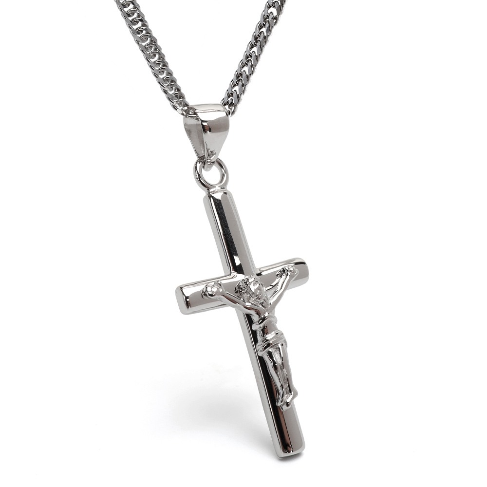 - (50cm) シルバー925 クロスネックレス ペンダント シルバー 6面カットダブル喜平チェーン 925 細身 十字架ネックレス