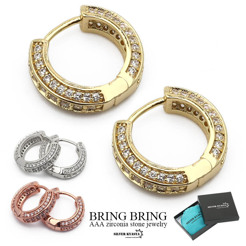 - (シルバー) フープピアス 18k メンズ 両耳 ダンス 大人 ゴールド シルバー CZ 専用BOX付属