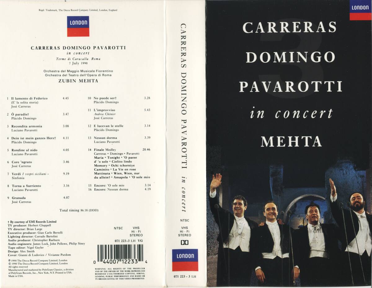 - 送料310円◆VHSビデオ 三大テノール伝説のコンサート・イン・ローマ 1990◆カレーラス ドミンゴ パヴァロッティ出演