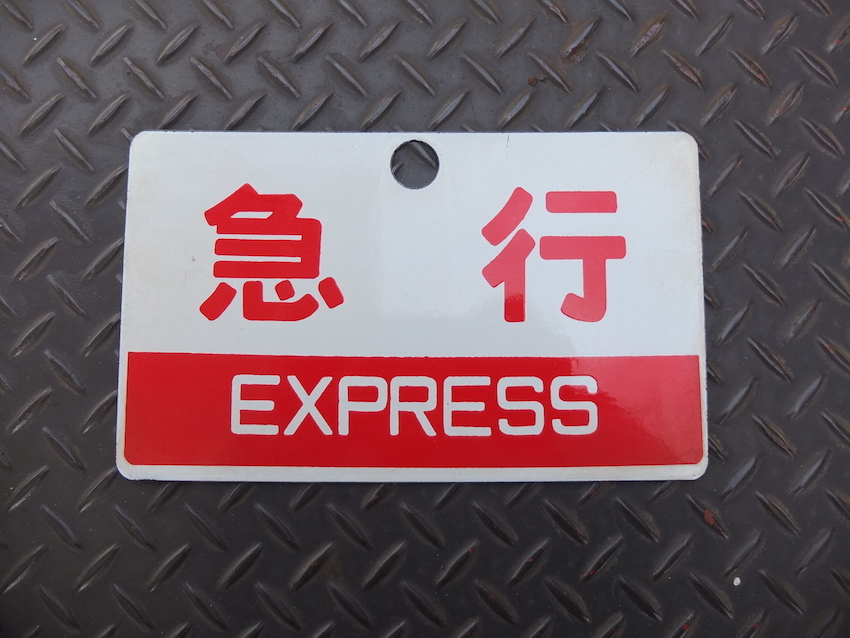 - 鉄道看板 車両案内板「急行 EXPRESS」案内板 表示板 国鉄 昭和レトロ ホーロー看板 サボ JR