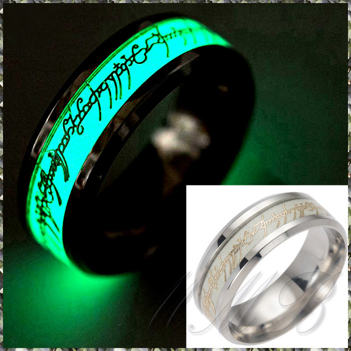 > [RING] Glow in the Dark The Lord of the Rings 暗闇で光る 夜光 Gold Letter ロード・オブ・ザ・リング レプリカ リング 20号 (送料無料)
