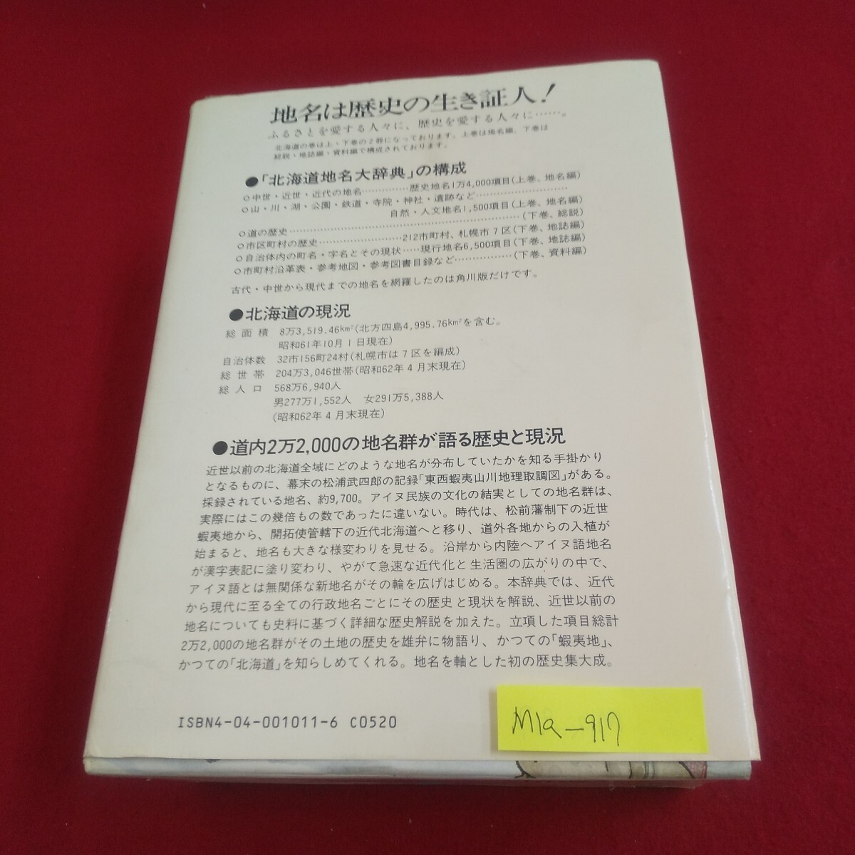 - M1a-917 角川日本地名大辞典1 北海道 上巻 昭和62年10月8日発行 編者/竹内理三 地名用語 難読地名索引