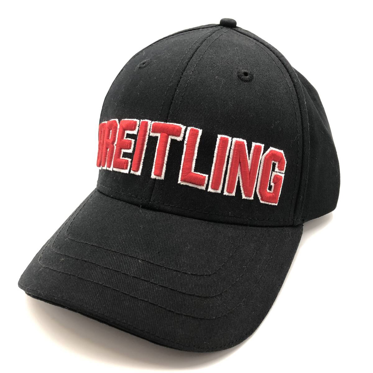 > 【未使用保管】BREITLING ブライトリング キャップ 帽子 英字ロゴ 黒 ブラック 赤刺繍 コットン100% 綿 ワンサイズ ノベルティ