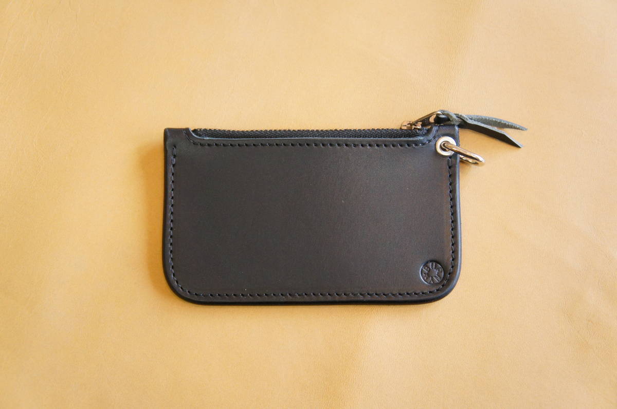 - ウォレチェンを付けられる小銭入れ 黒 WCC1 ヌメ革 カード入れとしても 薄い小銭入れ ブラック 本革 コインケース バイカー