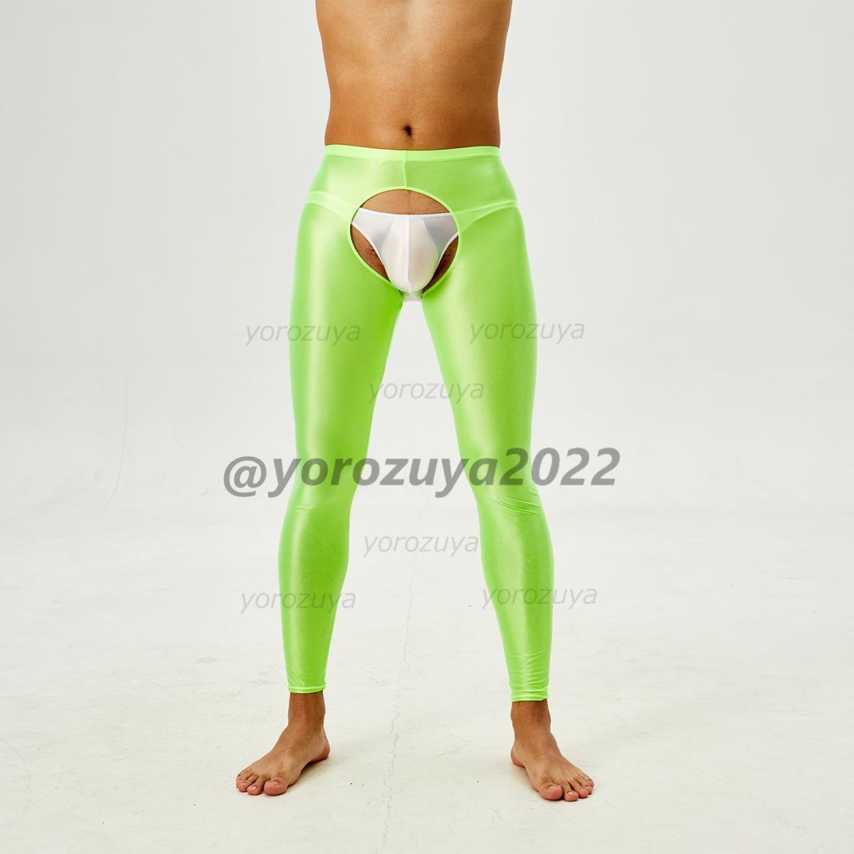 - 164-265-21 メンズ ツヤツヤ 光沢 オープン タイトパンツ 【グリーン,M】男性 下着 セクシー エロ コスプレ ランジェリー レギンス .2