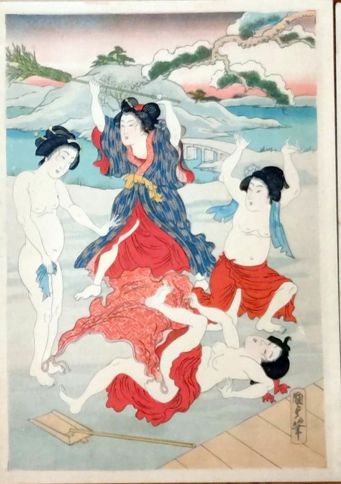 - f25020741〇一枚摺物 B6サイズ 彩色木版画 浮世絵 機械摺 昭和初期〇和本古書古文書