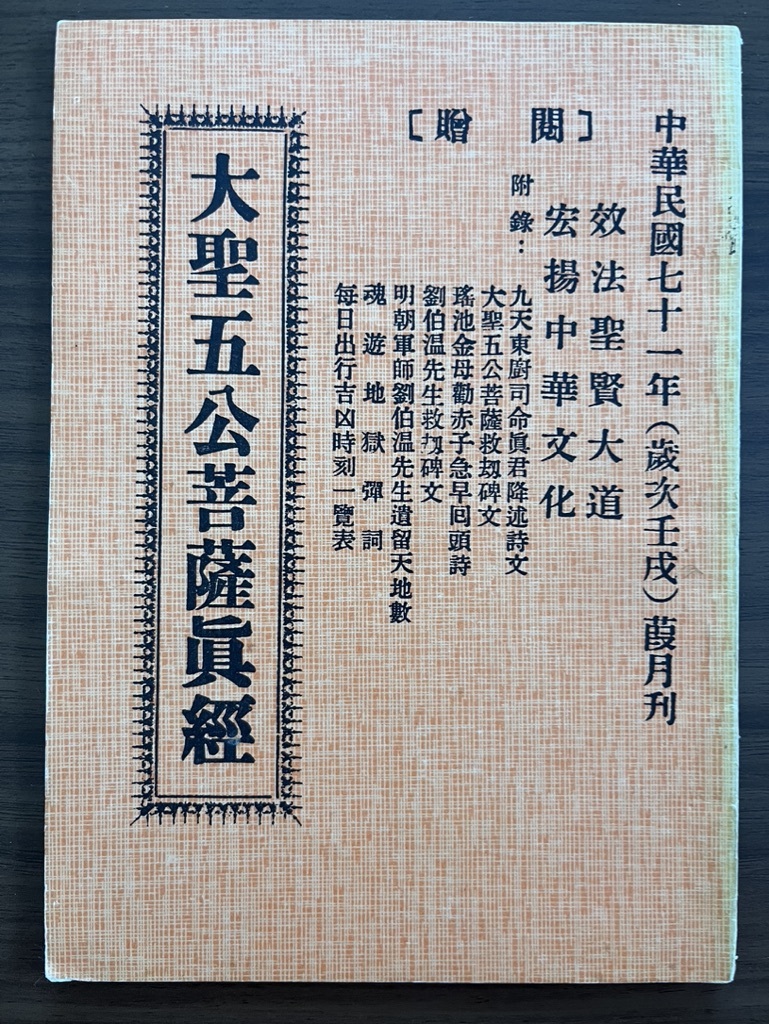 - 中国語本 『大聖五公菩薩眞経』 中華民国71年(1982) 台湾・久晋彩色印刷有限公司