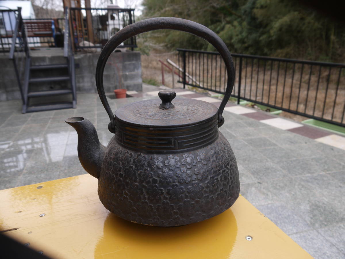 - ★【A20203】 南部 勝栄堂 桜花紋 鉄瓶 時代 匿