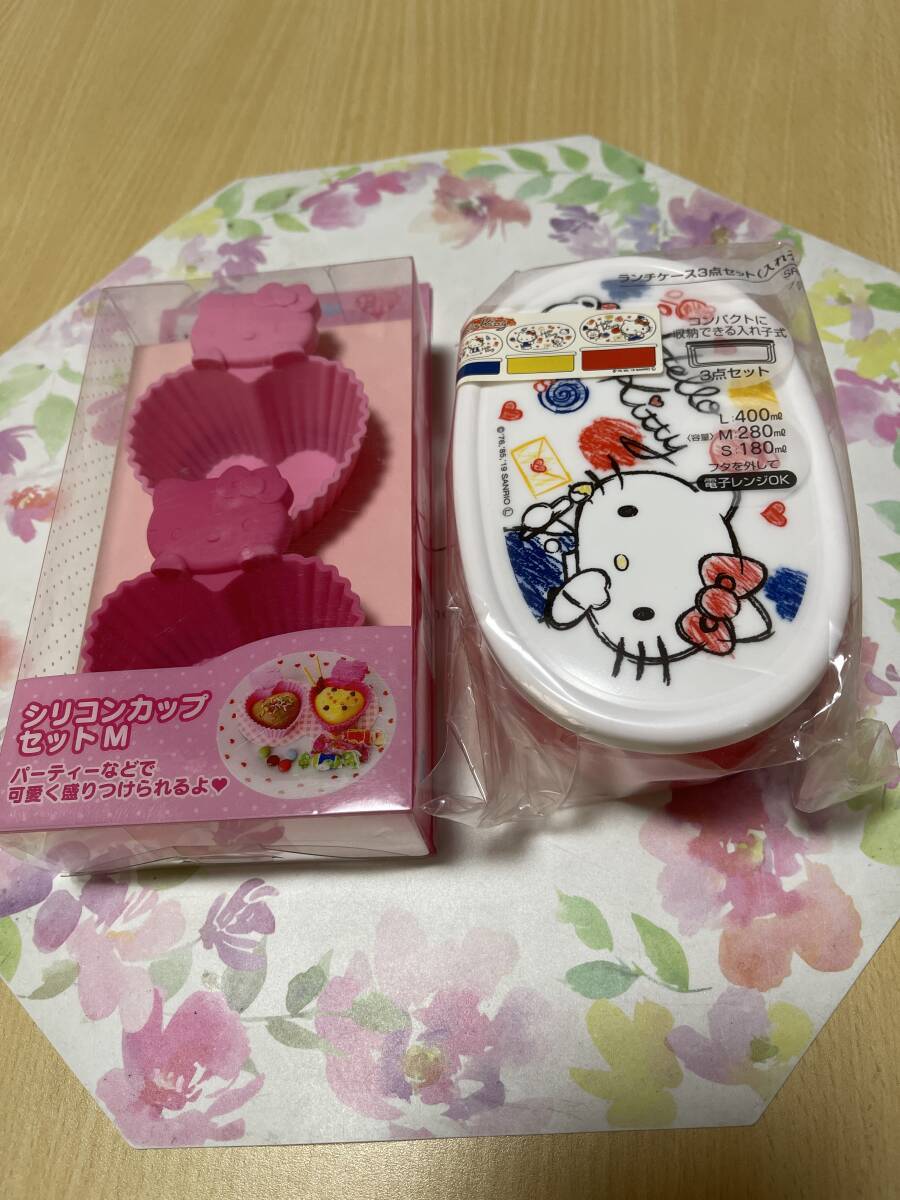 - ★ハローキティ/ランチケース3点セット(入れ子式)&お菓子も焼けちゃうシリコンカップセットM★