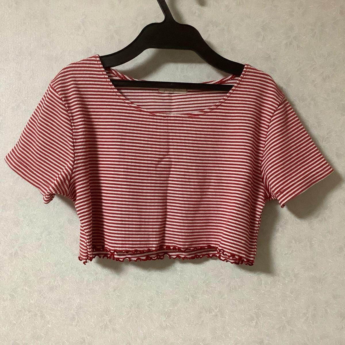 - 昭和レトロ Tシャツ カットソー 赤と白ストライプ クロップドトップ カットソー