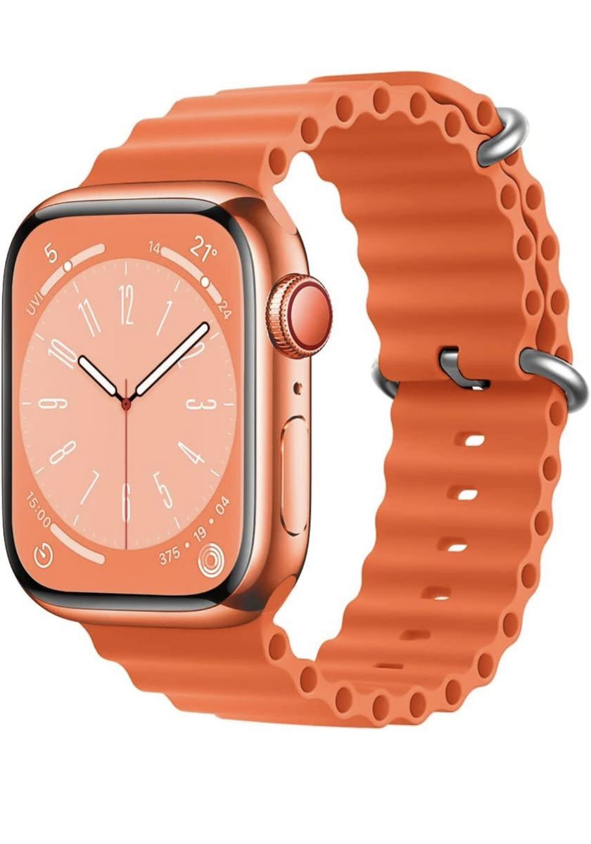 - Apple Watch バンド 通気性 耐衝撃 防汗 取付簡単 交換ベルト appleウォッチ オーシャンバンドシリコン42/44/45/49mm オレンジ