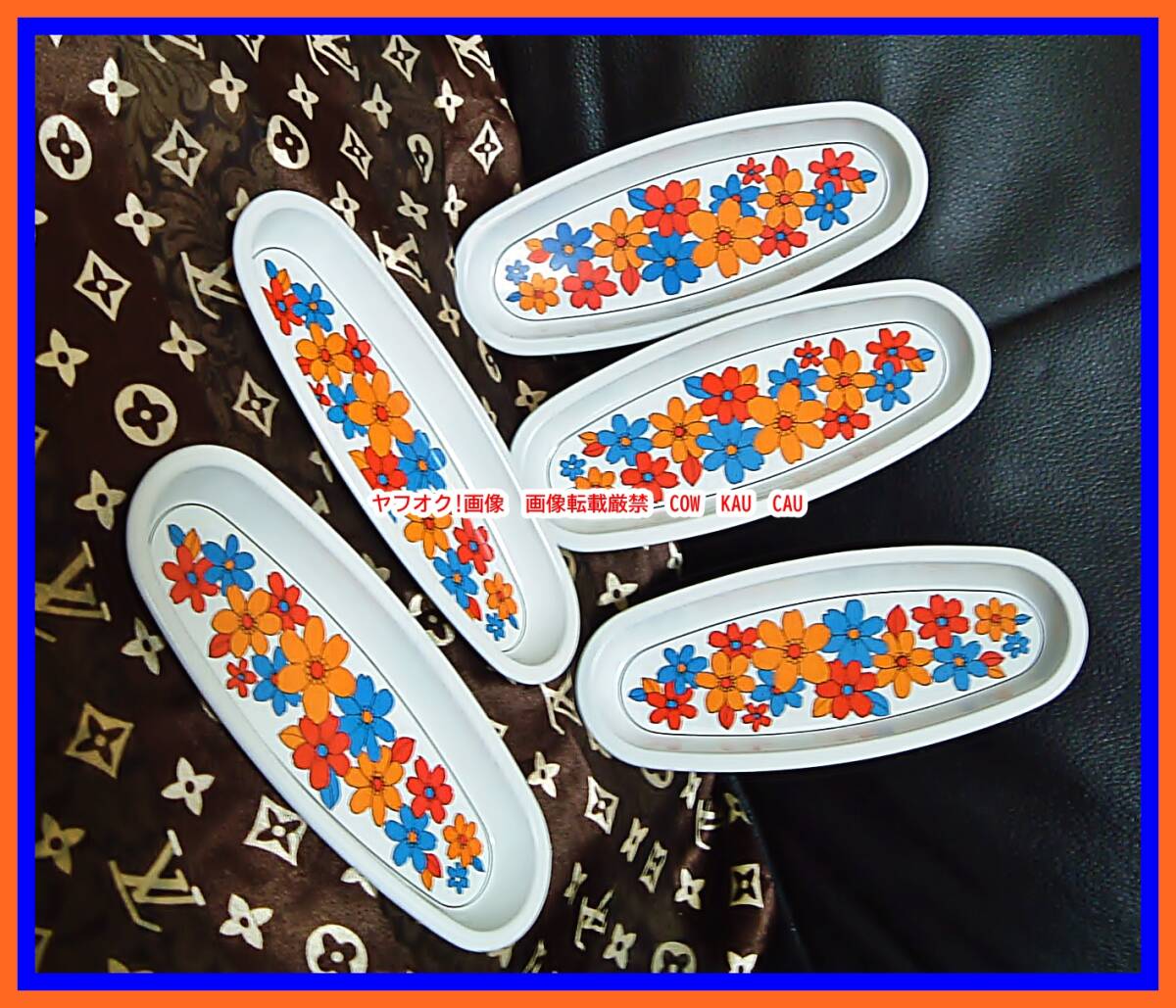 - お花 フラワー スチール トレー 5枚まとめて 未使用 ◆ レア レトロ POP 廃盤 エモイ 未使用