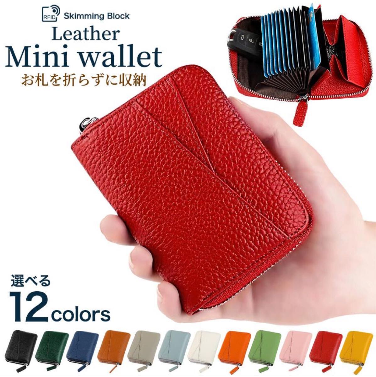 - 財布 レディース 二つ折り 本革 ミニ財布 カードケース小銭入れ コインケース 48