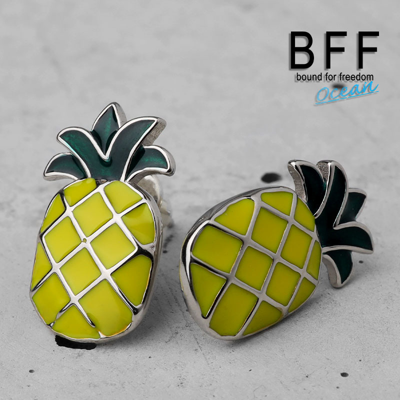 - BFF ブランド ピアス シルバー925 銀色 パイナップル 両耳用2点 金属アレルギー対応 専用BOX付属
