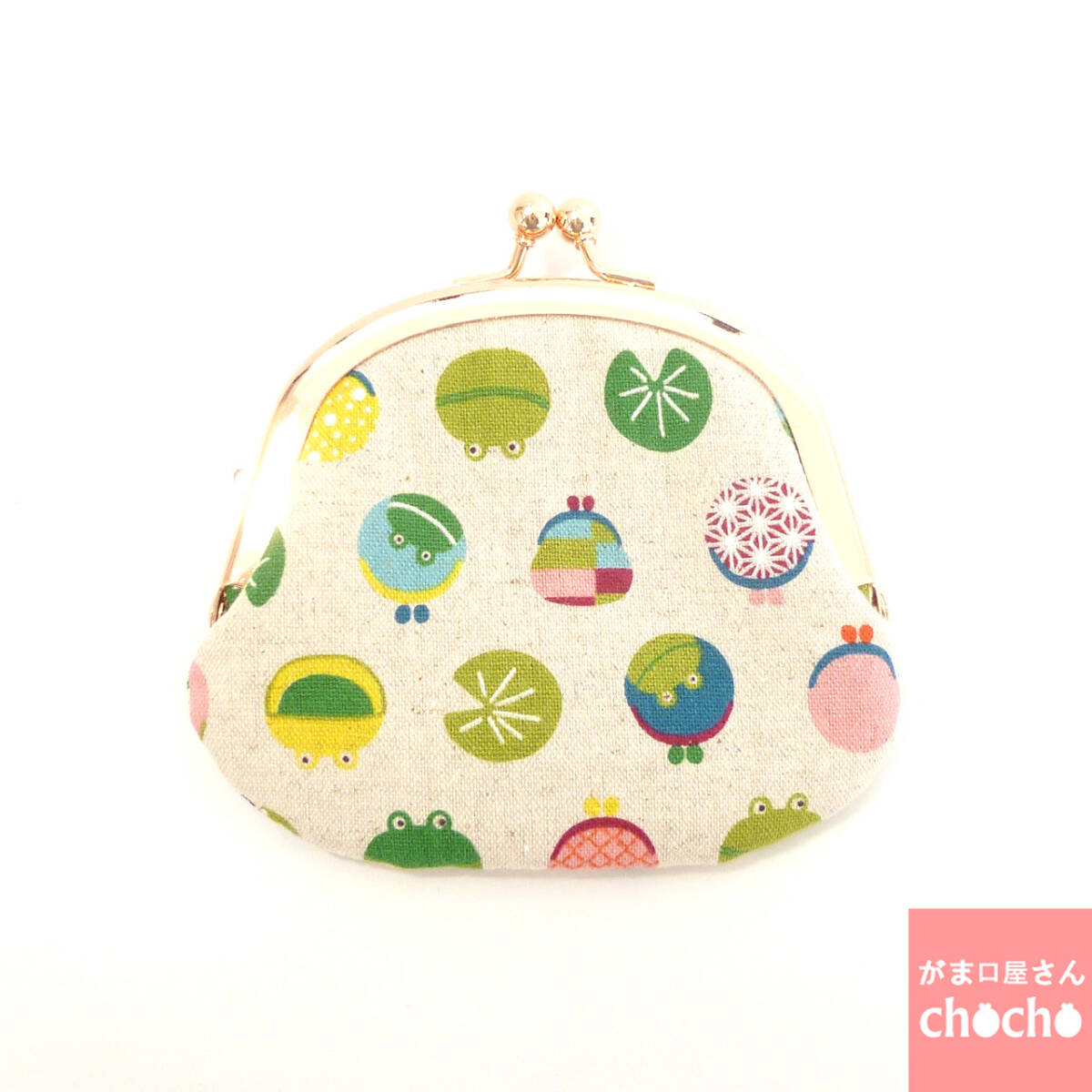 - がま口小銭入れ がまガエル カエルさん 生成り コインケース ハンドメイド G392 3.3寸