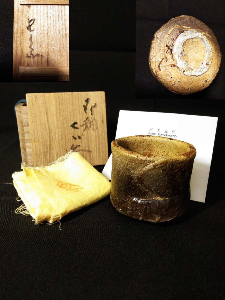 > 河本五郎 灰釉 ぐい呑 酒器 酒杯 杯 猪口 在印 陶芸 工芸品 (検索) 骨董 古玩 作家物 瀬戸焼 古道具 美術 酒道 盃 酒盃 コレクター 茶杯