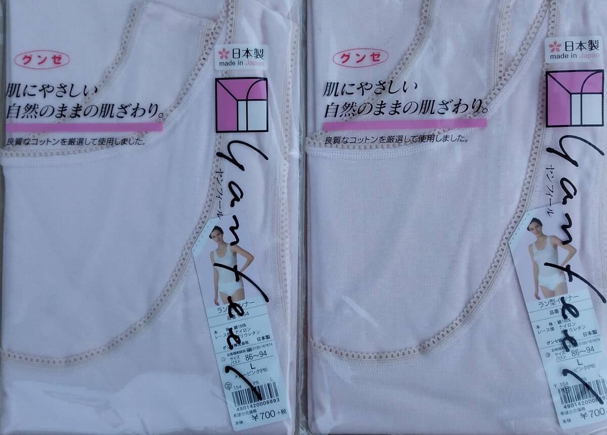 > ラン型インナー グンゼ GUNZE ヤンフィール Yanfeel サイズL 2枚 本体:綿100% メローピンク 未使用 未開封 日本製
