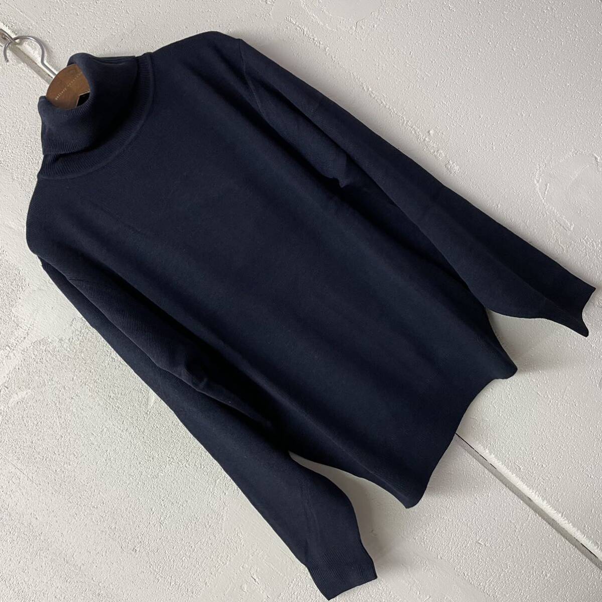 - Sサイズメンズお家で洗えるウール混タートルセーター ネイビー