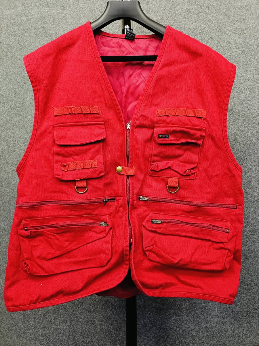 - ★リネン混 フィッシングベスト ベスト レッド 赤 アウトドア 古着