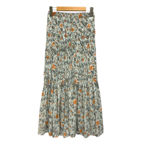 > ユニクロ UNIQLO スカート プリーツ ギャザー フラワー 花柄 ロング丈 XS 水色 ライトブルー レディース