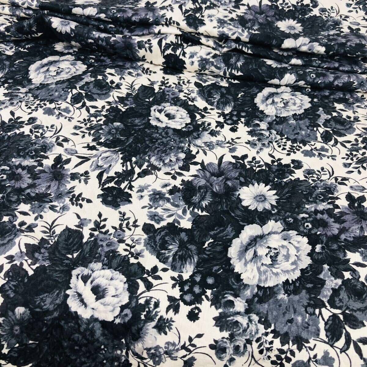 - 1m YUWA*有輪 クラシカルなモノトーンの薔薇 アンティークローズ 高級生地*フクレジャガード モノトーン 薔薇 ローズ