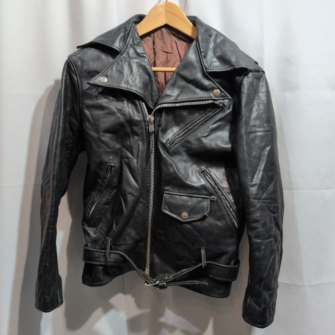 > 70s Vintage A zipper ユーロ ライダースジャケット M相当 メンズ 革ジャン 黒 ダブル 70年代 ビンテージ パンク/ロック/ルイス/666/Shott