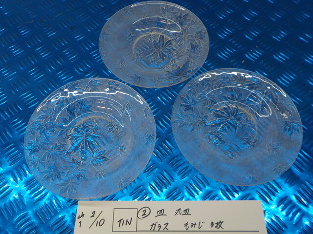 - TIN●〇(2)皿 丸皿 ガラス もみじ 3枚 7-2/10(か)