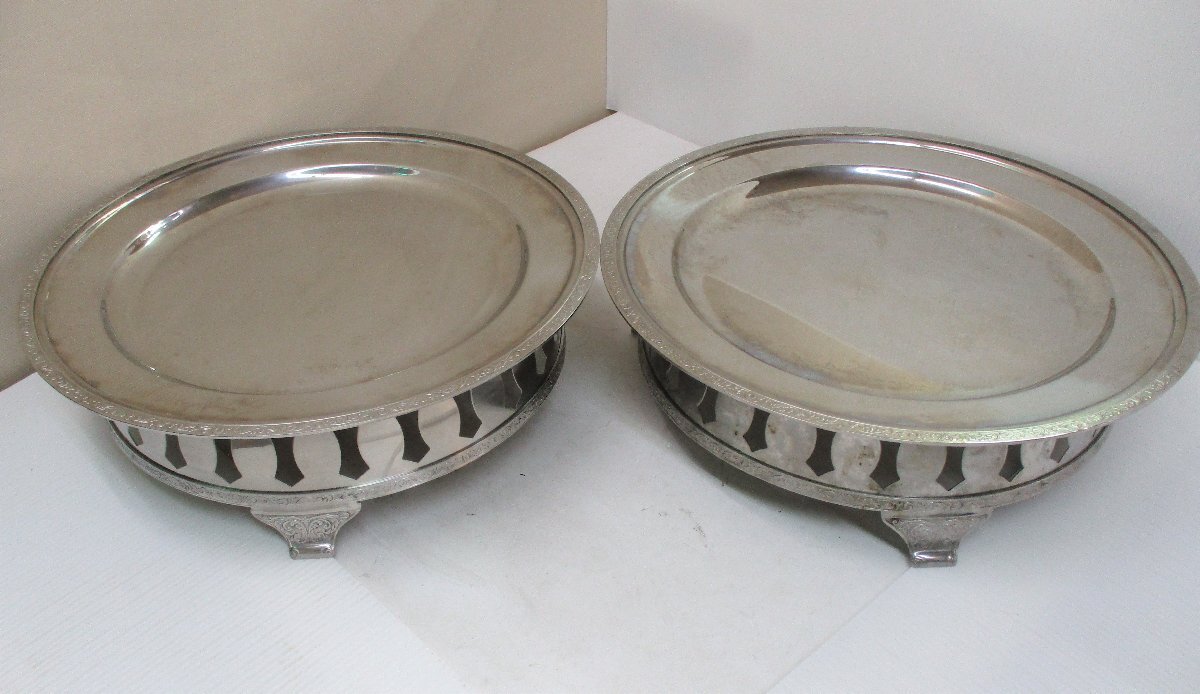 - ★ 90346 18-8 モンテリー 丸皿 + 丸飾台 16インチ 幅41.4cm 2組セット 丸型 飾台 ビュッフェ スタンド バイキング 中古 ★*