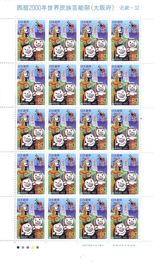 - 「西暦2000年世界民族芸能祭(大阪府)」の記念切手です